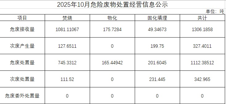 2025年10月危險(xiǎn)廢物處置經(jīng)營(yíng)信息公示